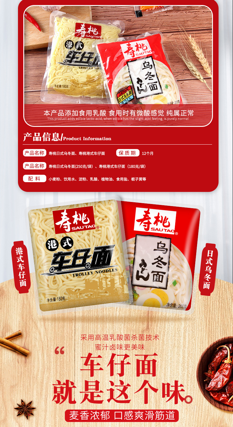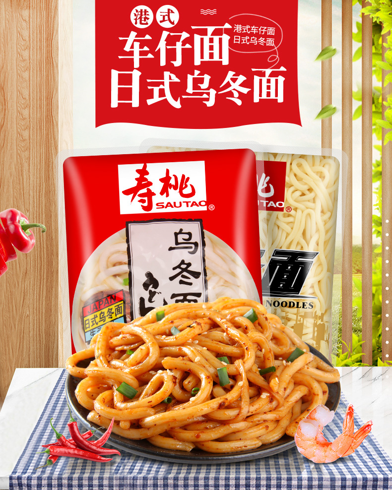 寿桃牌港式车仔面乌冬面180g非油炸拌面速食夜宵意面热干面方便面